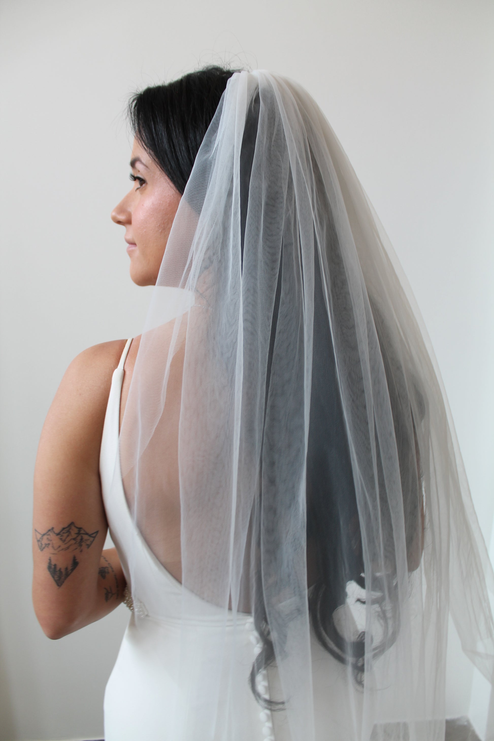 Timeless, elegant, and effortlessly bridal—this signature veil is made from soft ivory tulle that flows with light, airy movement. Classic and versatile, it offers the option to add a 30" blusher for that unforgettable walk down the aisle. A beautiful blend of tradition and modern grace.